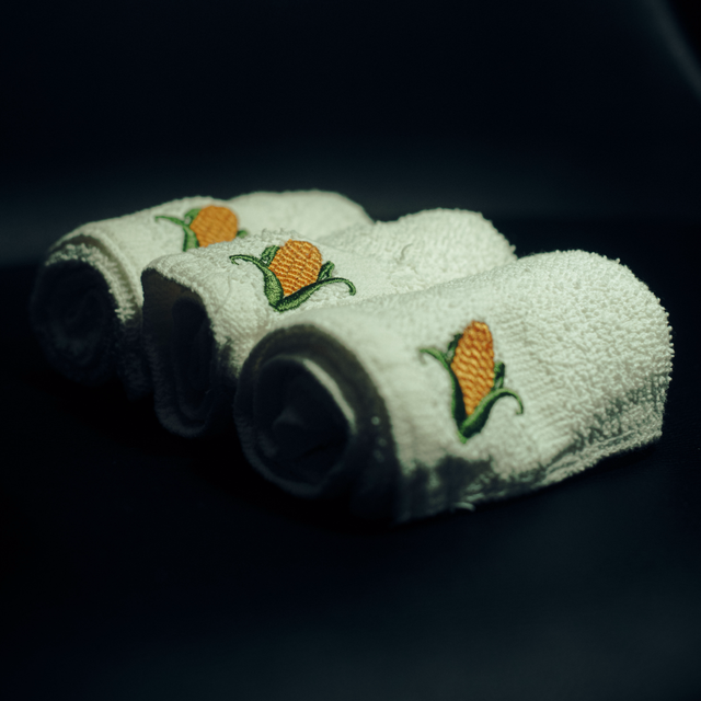 Im Schatten deines Bettes wartet dieses kleine Handtuch, bestickt mit einem verspielten Maiskolben – bereit, alle Spuren aufzusaugen. Perfekt zum Aufwischen, was die Nacht so hergibt. Nachhaltiger als ein Kleenex, waschbar und immer wieder einsetzbar.